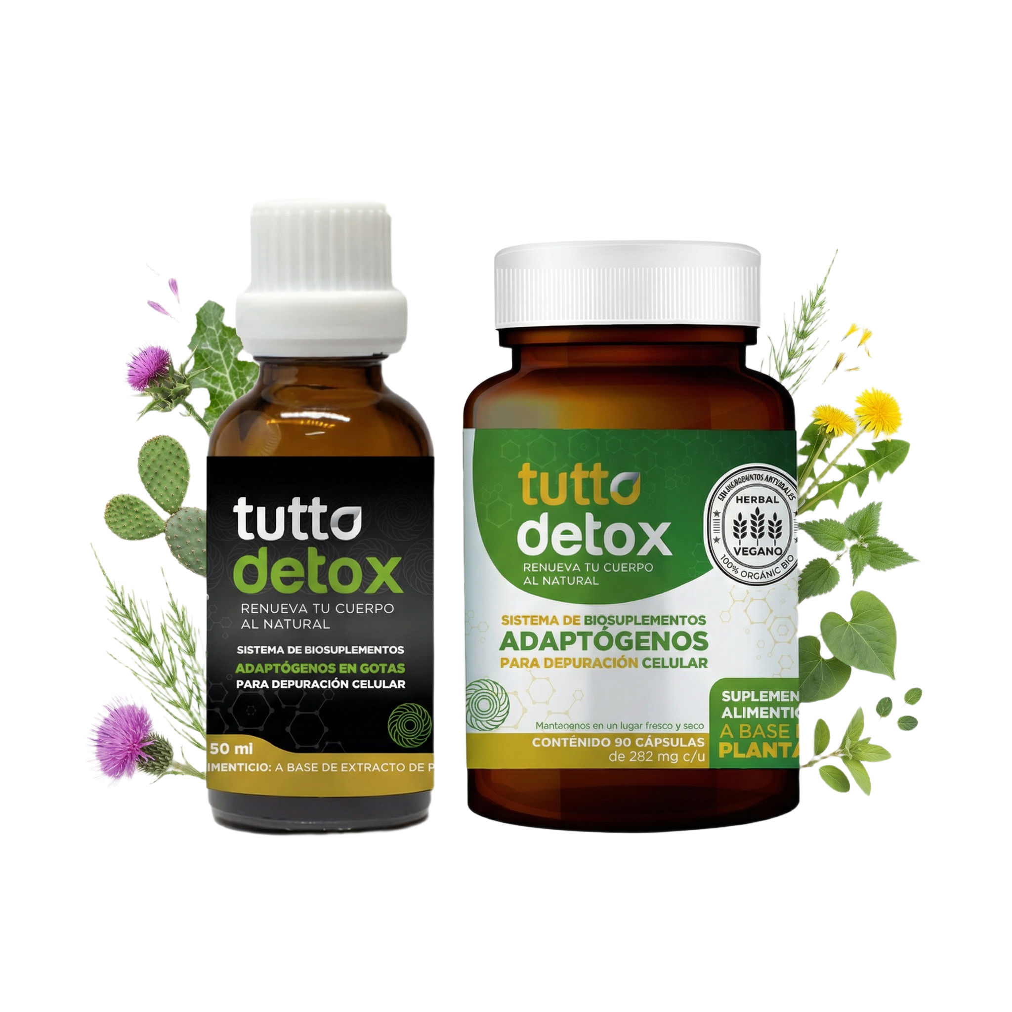 Sistema que apoya el equilibrio interno y la depuración natural del organismo, 8 plantas medicinales y compuestos bioactivos.